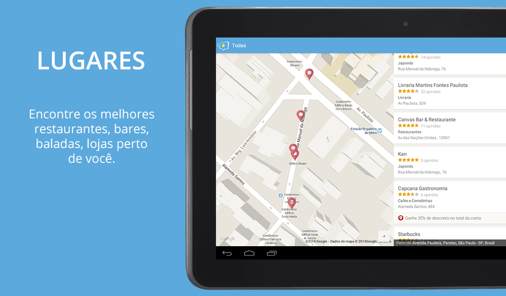 • Traçar rotas, ver sugestões e acompanhar o que está em alta no local onde está ou deseja ir.